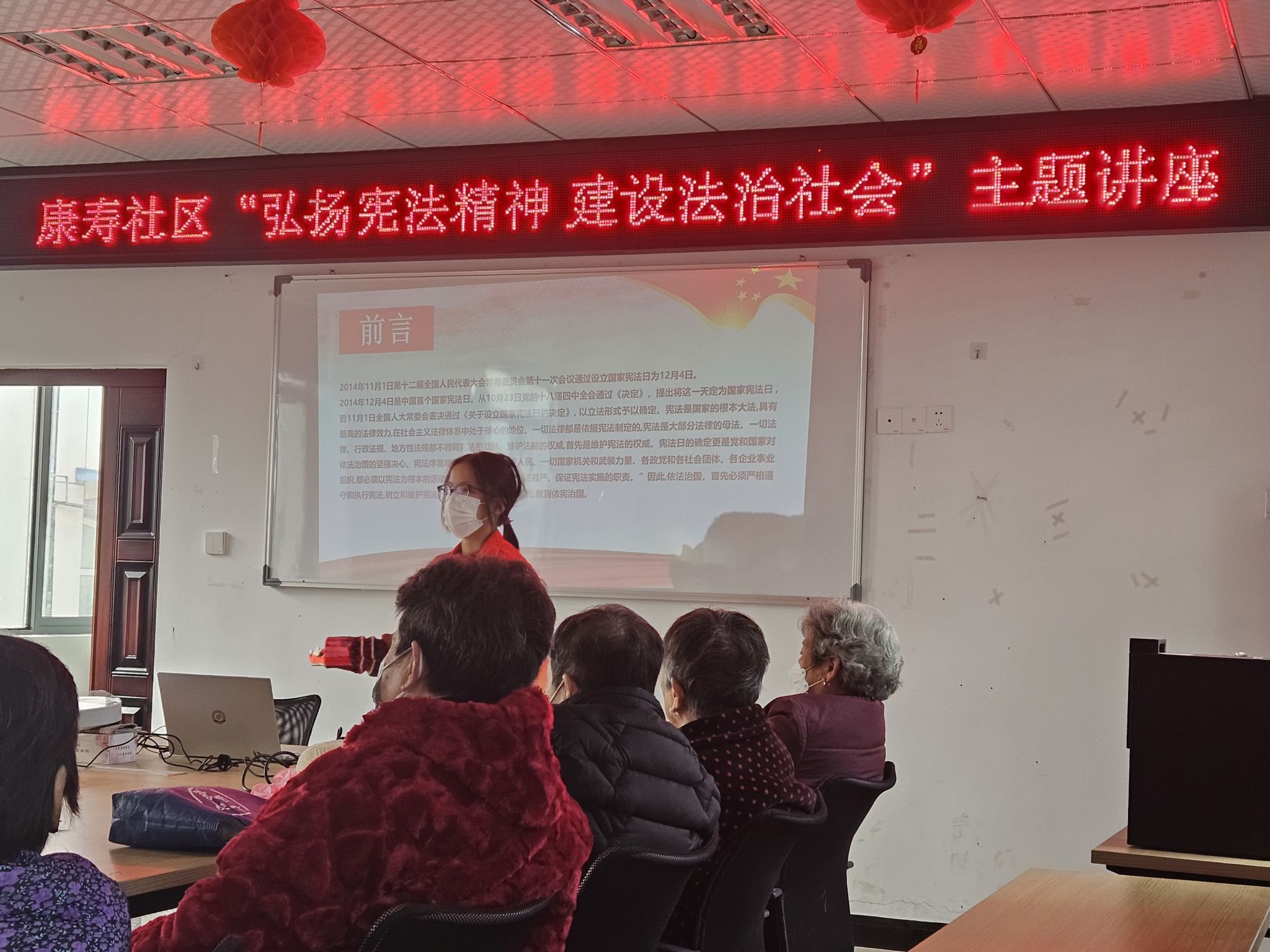 “宪法进社区”深受欢迎。“宪法进社区”活动通过法律志愿者宣讲宪法、发放传单并向居民讲解宪法相关知识的方式来提高社区群众的法治素养。图片、文字等的运用充分调动了居民兴趣,问答互动更是活跃了现场气氛。志愿者们向社区群众普及了“国家宪法日”设立的由来,以生活实例深入浅出,具体阐述了宪法内容,让居民切身感受到宪法其实就在大家身边。