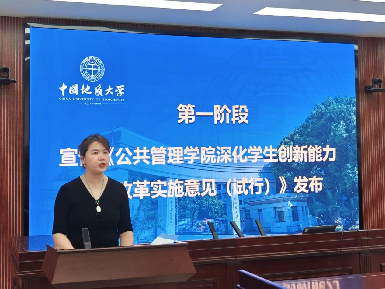 龚丽宣布122cc太阳集成游戏青年教师学术指导团正式成立,并对学院青年教师指导团成员作简要介绍。她围绕指导思想、优化思路、主要举措等三个方面对《122cc太阳集成游戏深化学生创新能力培养改革实施意见(试行)》(以下简称意见)进行解读。她表示,青年教师指导团的成立旨在为同学们提供全方位的学术支持,鼓励广大学子主动、积极与指导团的老师加强沟通交流。