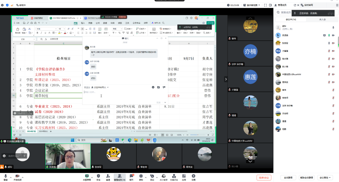 教学各项任务负责人汇报了学院搬家完成后,教学档案资料的规整情况,学校和学院督导对各项评估任务的内容和要求进一步进行了解析。会议明确了学院下一步迎评工作的机制、时间节点及各项任务清单的负责人、督导人,并建立责任到人的教学管理的约谈措施。