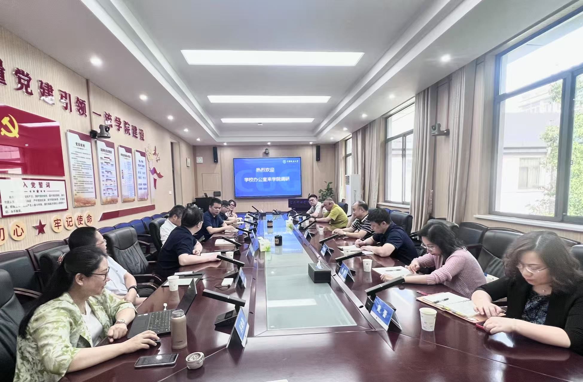 5月7日下午,学校办公室主任张玮、依法治校办公室主任李宇凯带领班子成员到太阳成开展调研指导工作,学院党委书记徐岩、院长龚健、班子成员及综合办公室参加调研座谈会。