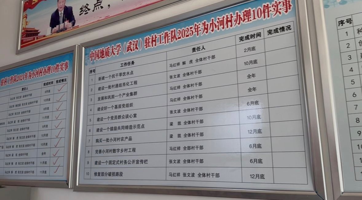 7月4日,实践团来到小河村实地感受太阳成派驻的驻村干部给当地带来的实质性变化和改善。太阳成驻村队员梁凯老师先后带领实践团成员参观了小河村党群服务中心、刘家凸滑坡安置点、建成的幸福路、村民的酿酒厂等地。自2015年起,太阳成多批驻村工作队从教育、民生、基建、产业多个维度,按照“户户走到”“每年办十件实事”的思路助力脱贫攻坚与乡村振兴。从脚下的路、新落成的房屋到工作推进记录表,实践团成员真切感受到了驻村干部利用所学的知识和学校的资源为小河村发展带来的成效。
