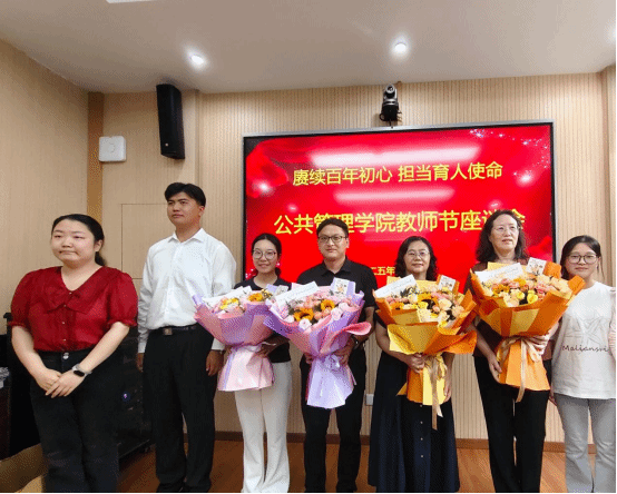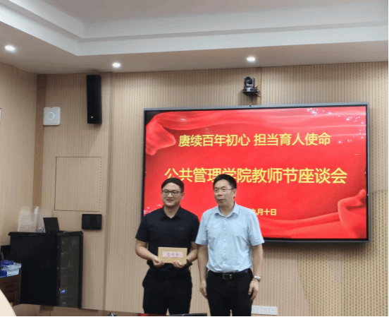 随后,教师代表依次分享心声。才惠莲回顾学院近年科研领域的蓬勃发展态势,坦言为团队中爱岗敬业的教师同仁与高效有力的领导集体深感自豪,对学院未来发展充满信心;唐健表示,加入公管学院是无悔的选择,作为教育工作者,更需坚守初心,努力成为知识的传播者、思想的启迪者与价值的引领者;向敬伟结合个人成长历程,感谢学院营造的融洽氛围与高效管理模式,并分享了参加省青年教师讲课比赛斩获佳绩的心得;青年教师李烨则讲述了自己成为高校教师的契机,提及学院的支持帮助自己快速完成身份转变,深刻体会到教育事业的神圣使命与价值。
